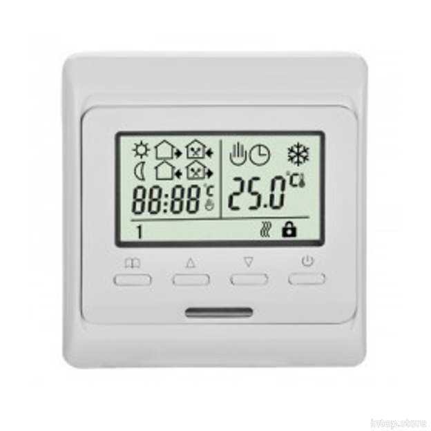 Комнатный программируемый терморегулятор с выносным датчиком температуры пола. Прибор позволяет значительно снизить энергопотребление теплых полов, путем поддержания комфортной температуры +5С до + 50С по датчику температуры пола / воздуха / пола+ воздуха только в рамках установленных временных интервалов и только тогда, когда в этом есть необходимость. Большой графический дисплей с подсветкой и кнопками управления. Дружеский "интуитивный" интерфейс . Наличие встроенного меню, позволяющего управлять всеми функциями (аналогично мобильному аппарату). Встроенный монтаж. Многорежимный термостат со встроенным блоком реального времени и календарем.. Прибор собирает и хранит всю информацию о системе обогрева, позволяющую пользователю контролировать свои расходы без жертвования комфортом.