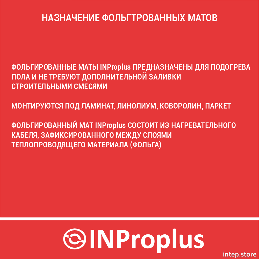 Фольгированный теплый пол INProplus идеально подходит практически под любое напольное покрытие.